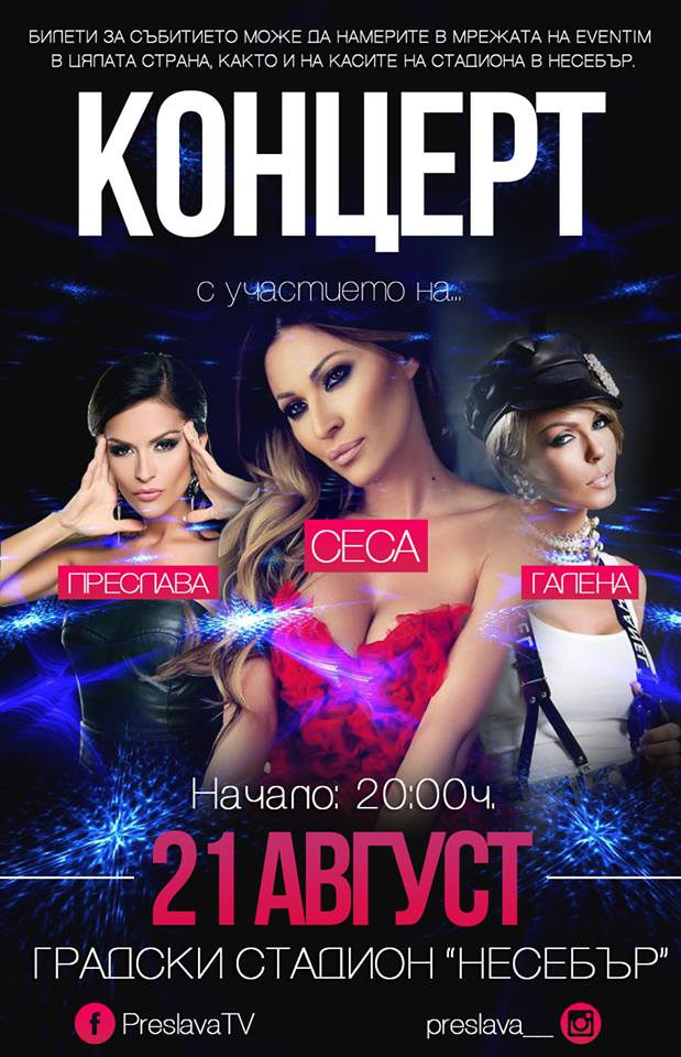 Две од најпопуларните бугарски ѕвезди во моментов на музичката куќа „Пајнер“ во соседна Бугарија – Галена и Преслава се собираат специјално за мега концертот на Цеца на 21 август во Несебар.